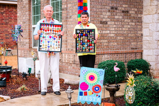 Throughout the home of Chavez and Francis, there is memorabilia from their many years attending Fiesta events. From Night in Old San Antonio (NIOSA) posters made in the 1980s to a wide variety of ceramic decor to shadow boxes filled with Fiesta medals, the duo thoroughly enjoys Fiesta's festivities. Fiesta history resounds throughout their home as the festivities draw near. “Every year I go to Fiesta, I look and see if there's something new and I purchase it,” Chavez says. “These are items we just started collecting because we have events at the house, and want it to be decorated.”
