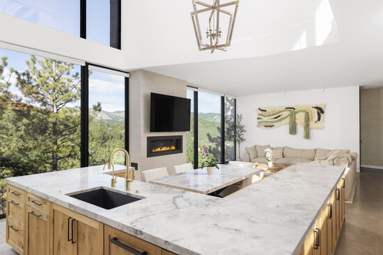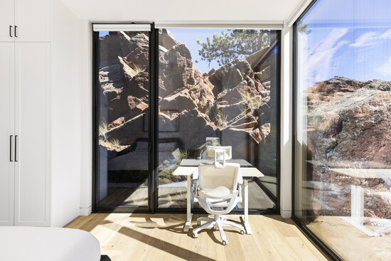 “When you move from room to room, you get to engage the outdoors in different ways,” says Ethan Bullock. “The experience evolves as you walk through the house, seeing rock outcroppings, evergreen trees, and even the continental divide to the west.”