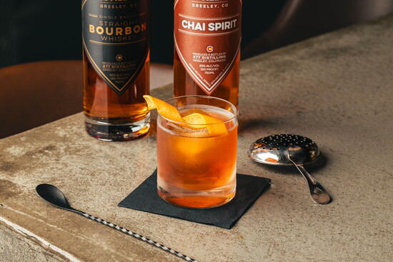 Mix the bourbon, chai spirit, simple syrup, and Angostura bitters together and then pour into a cocktail glass.