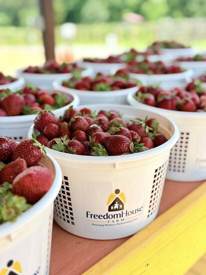 Pick your own strawberries or visit the farm stand for fresh produce, flowers, and jams. All proceeds support a women's recovery program.