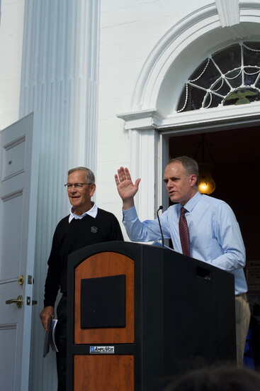 Last summer, the church completed a major renovation of its most recognizable feature: the steeple. The project addressed damage that accumulates from a uniquely challenging combination—New England winters meeting salt air from Long Island Sound. "The southern side, which takes the salt air coming in, really does a number on wood," Eckhart explains. The congregation kicked off fundraising during their bicentennial celebration two years ago.