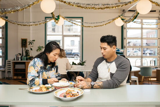 That sense of camaraderie is especially present each February, when Creature Comforts hosts its Chinese New Year seated dinner in collaboration with Rising Tiger and chef Devin Keopraphay. As the Year of the Fire Horse begins, Jess is leaning into experimentation, creativity, and joy. “Play is calling,” she says, referencing one of the phrases on the café’s exterior mural—a fitting mantra for a café designed not just to be visited but truly lived in.