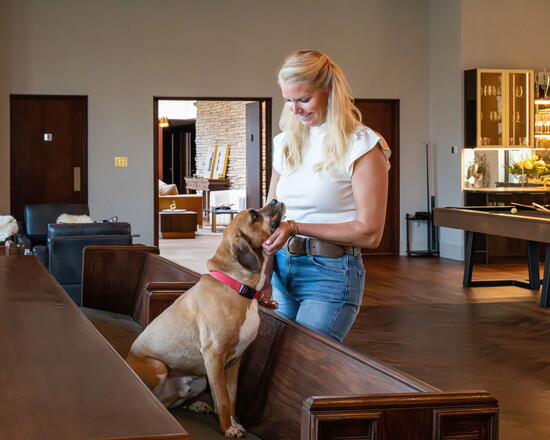 The finished home includes four bedrooms, three full bathrooms and two half baths. Pam and Matt live there with their three children, Drew, Tommy and Emily, and their dog, Beaux.