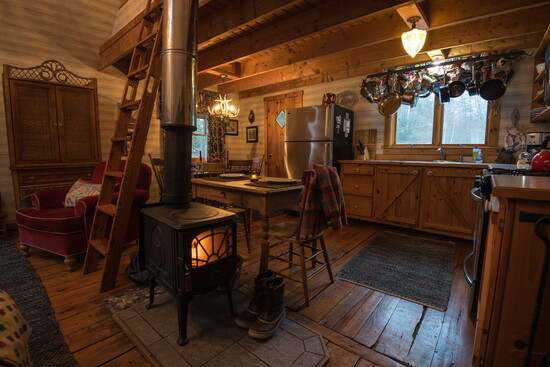 A-frames are well-suited for a dramatic wall of glass, pulling the outdoors inside and framing views of trees, snow, or starlit skies. The true magic of the A-Frame lies in its cozy, comforting interior— crackling wood-burning fireplaces, warm wall paneling, and hardwood floors that invite you to slow down.