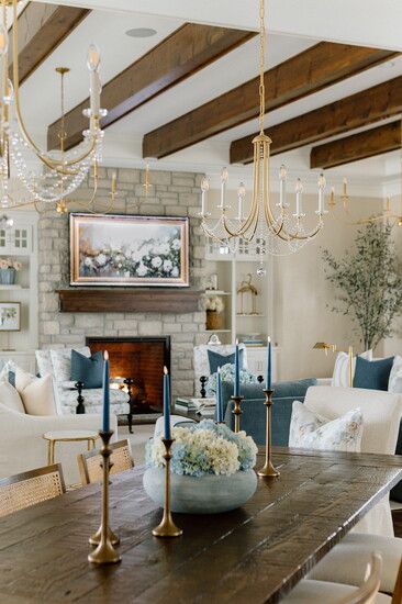 Rather than remodeling, the focus was on a cosmetic refresh of the main level. The goal was to lighten and soften the space, moving away from a palette that felt heavy and dark. The previous design leaned strongly on bold contrasts and deep tones, which no longer aligned with the homeowners’ vision. They wanted something brighter, calmer, and more inviting, with a Southern traditional influence.
