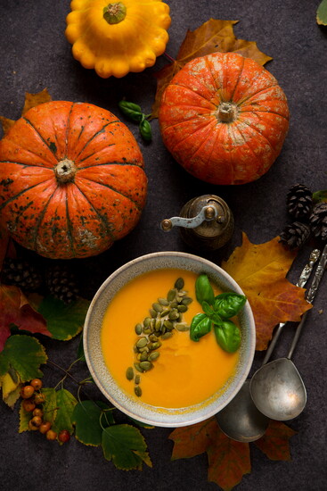 2. Cut the squash into half or quarters. Place the squash flesh side up on a baking sheet. Brush with avocado oil. Sprinkle flesh with salt & pepper. Roast squash and pumpkin for 35 minutes or until tender. Cover with aluminum foil if the flesh is turning too brown. Once tender, remove from oven and set aside to cool.
