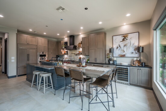 - Arizona-Specific Trend: In upscale foothills homes, walls between kitchen, dining, and living zones continue to recede, with visual and spatial continuity allowing design harmony across rooms. Our desert homes shine when kitchens open to patios and courtyards through multi-panel sliders, pass-through windows, or outdoor serving bars, so entertaining flows naturally. Fresh designs emphasize seamless transitions to outdoor living spaces, featuring pass-through windows, large sliding glass doors, and integrated patio kitchens.