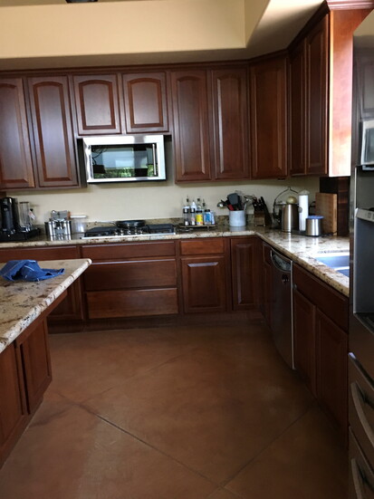- Arizona Considerations: Porcelain tiles are particularly effective in the foothills as they don't absorb heat like other materials, provide water resistance, and are easy to clean, remaining cool underfoot during hot summer days. And the family dogs like to nap there in the afternoon. Porcelain or engineered flooring spans spaces gracefully and is selected for UV stability in desert climates. For outdoor kitchen flooring, porcelain and travertine pavers excel due to their heat-reflective properties and aesthetic versatility, staying cool to the touch while preventing slips.