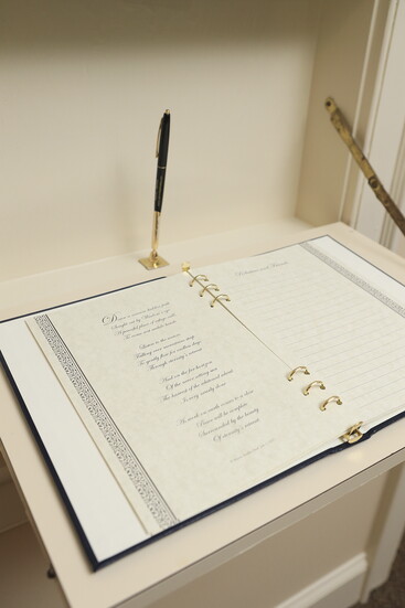 One story, in particular, has stayed with him. Years ago, Carmichael Funeral Home helped a young mother who had lost her infant. Months later—just two days before Christmas—she returned with a card to thank the team again for helping her through the worst time in her life. That card now sits in a cabinet in the arrangement office, alongside other meaningful mementos collected over the years. “That was one of the best Christmas gifts I’ve ever received,” Jim says.