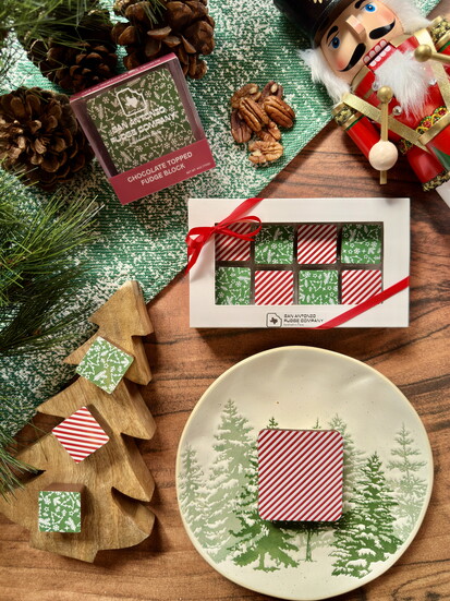 Their signature Fudge Blocks are the heart of the collection, featuring rich, velvety fudge topped with silky chocolate and intricate designs. For those who love a taste of Texas, the Cowboy Fudge Block is a longtime fan favorite, perfectly balancing walnuts, marshmallows, and smooth chocolate fudge. Each piece is beautifully packaged and designed to impress, whether it is a personal treat or a holiday gift meant to share.