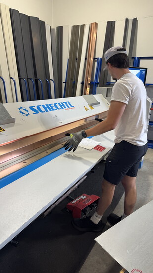 So, what is a standing seam roof? “A standing seam roof comes in a coil, and then we have the ability to fabricate up to four different profiles of panels with our standing seam machine,” says Tom Kaufman, a fourth-generation family member and COO. “It consists of long panels where it's one piece from the bottom edge all the way up to the ridge, so there are no seams. And, with our panel machine, the fasteners are concealed too, so you don't have exposed screws like you would with a big box store panel.”