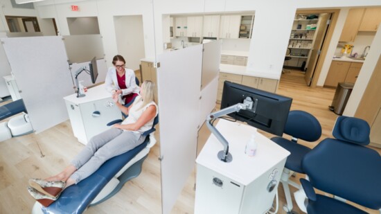 When walking in, patients will find an entirely new layout with an expanded waiting room. The new consultation room is a great place for patients and their families to meet with Dr. Lelich or with her associate orthodontist, Dr. Molly Erdman, for their initial appointment. They can view and review their digital X-rays and photos on a large TV screen. “A new break room provides space for our team to gather and is a place where we hold both meetings and celebrations,” she says. “We love it.”