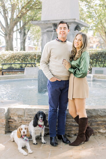 After attending Tech where he studied business and met his bride, the two said their “I Dos” at the resort’s stunning Peachtree Falls outdoor wedding venue. Before that, Matthew attended Law School at Georgia State University, then interned in the Office of the Speaker and the Office of the Governor, while Lindsey interned for Atlanta-based Spanx. While their careers are important to this young couple, the time they spend feathering their nest, taking their adorable four-legged family members Max and Honey on walks down Mimosa Boulevard, and exploring the sidewalk lined streets of their new hometown is “the sweet spot.”