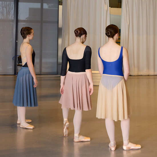 The first production under the new leadership team will be Winter Mix this month. Ballet Mistress Julie Neiscraxz compares Winter Mix to a “flight of wines.” The three short, very different pieces provide a “taste” of different styles and choreography designed to appeal to a broad audience. “It is always one of our most popular performances” says Julie, as there is “something for everyone.” Neiscraxz is a former member of the company as is Costume Director Gabriella Noros-Diaz, who, along with her team, sews all of the costumes for every production in-house.