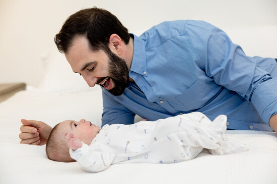 Nathan: I was similarly surprised by how cute he is. Everyone talks about "pain and suffering" after having a baby, but I don't mind being tired. A big joy has been seeing the happiness of people when they meet David. We are amazed by how social and alert he is.