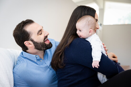 Caroline: I have a private therapy practice, and resumed part-time work after about 16 weeks. We have a part-time “Superwoman” nanny, and Nathan’s family is local and has provided lots of support. I get acupuncture and often meet up with friends for a walk with the stroller.