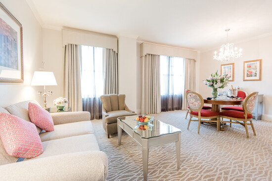 The hotel’s architecture and design have also kept elements of its more than century-old life. “In the lobby, the floors are original to the building. In our presidential suite, when you walk into the room, there’s a wood parquet floor in the entryway as well as in the dining area, and that's all original to the building as well. So, there's a lot of things that are still here, living with that history,” says Grunska. It’s also kept the large room size leftover from the building’s previous life as an apartment complex. “While the rooms aren’t as large as a modern apartment, every King room offers a comfortable sitting area with two chairs, a dedicated workspace, and a vanity in the restroom—thoughtful touches that many hotels can’t accommodate due to limited space,” Grunska says.