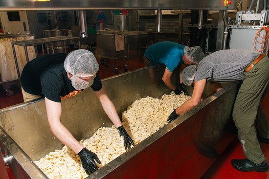 “We get to start the day with 3,000 pounds of fresh milk and we end the day with formed wheels of cheese that are made from just four ingredients–milk, salt, cultures and enzymes,” Andrea explains. “It’s really a beautiful process and one that we’re proud to be doing.”