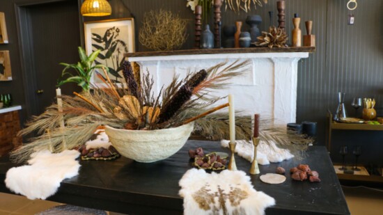 The first step to styling a table is to pick your theme and put down the first layer. Known for its earthy color palettes and rustic accents, the Southwestern style gives a beautiful homage to the charm of the “wild” American West. Traci Miller, owner of Terramania, says, “I’ve used everything from cowhides to blankets, – but I love having a textile on the table, and I chose rabbit pellets."