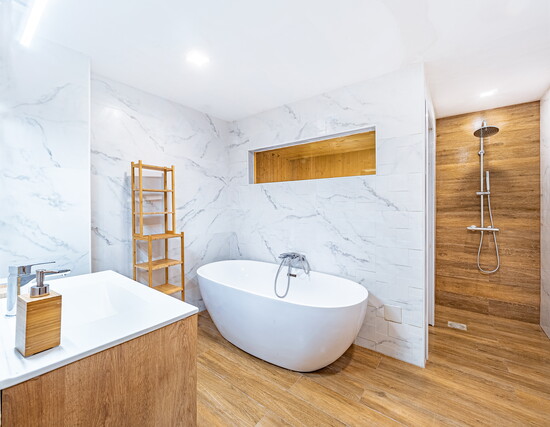 If a bathroom remodel is in order, take the opportunity to add a wellness feature, such as a custom home sauna, to bring the health benefits of a spa trip right at home. Home saunas are trending for good reason. Using a sauna is a great way to reduce stress and sweat out toxins. Hot tubs are another option for relaxation. A nice long soak in a hot tub helps relax the muscles, relieve stress, and even improve sleep. Don't forget to include natural stone, adaptive lighting, and wooden elements to complete the vibe.