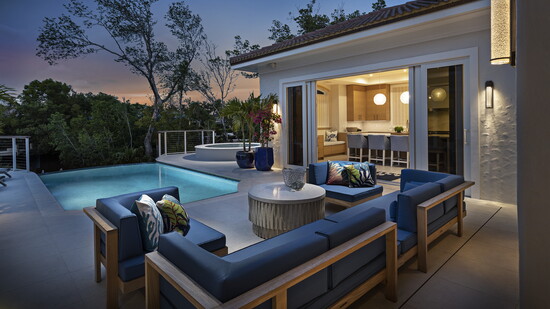 4 Viewing the infinity pool from the covered outdoor kitchen.