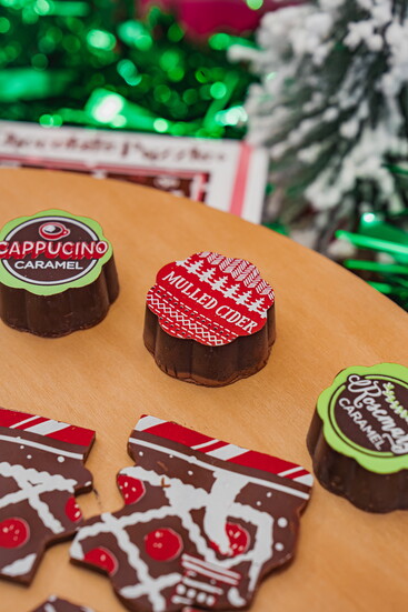 Her signature creation are her customizable 16-piece chocolate puzzles, which she spent over a year developing, then patented. Her favorite is the gingerbread house puzzle, which uses her mother’s spice mix and evokes a Christmassy scent. “It smells like holiday baking and Christmas, and brings me right back to being in the kitchen with my family,” Dwyer says.