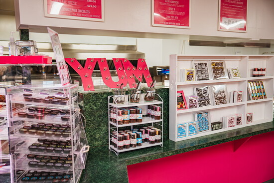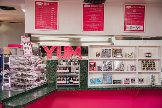 Dwyer also sells emergency desk chocolate: “twig” chocolate sticks for $10 in flavors like Regina’s Toffee, named after her mom. For the holidays, she has a chocolate-caramels pie set, holiday drinks collection, holiday movies set, and collection for Chanukah and Kwanzaa. On Small Business Saturday, customers can make customized Advent Calendars. Once a month, she runs a truffle-making classes where participants create a box of 16 chocolates for $65. Every Friday and Saturday from 12 to 4 p.m. for $5 people can make a personalized chocolate bar in the store.