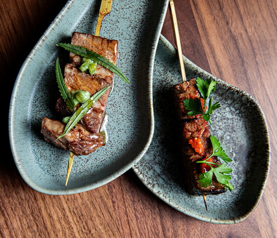 Indeed, the casual, intimate and deeply rooted home-style Shokudo attracts patrons for its slow heat, clean flavors and thoughtful small plates. “The smaller portion size is intentional because we want guests to feel encouraged to explore the menu and try a ton of different things,” Hamaya explained. Inventive choices include skewers with pork katsu or lamb shoulder with curry-pickled onion, duck meatballs with lotus root or dry-aged fish such as king mackerel, grouper and snapper.