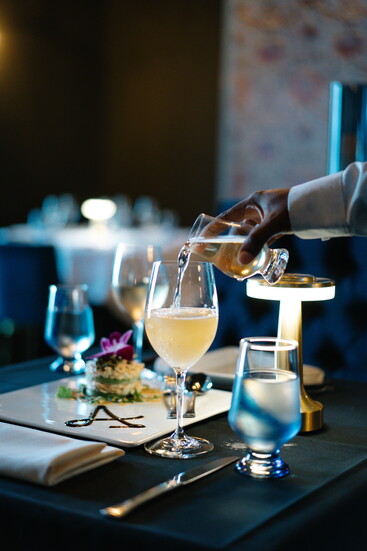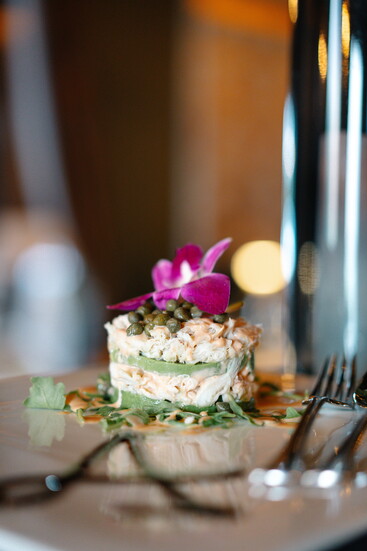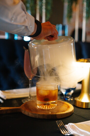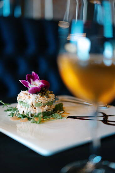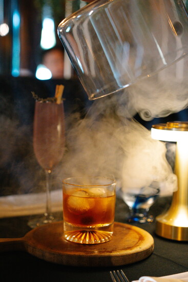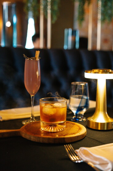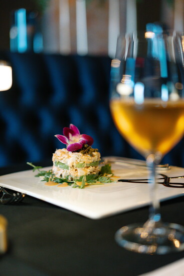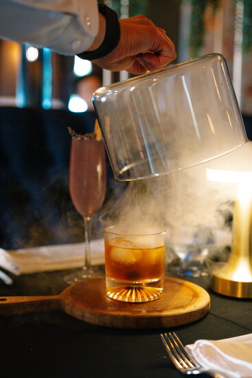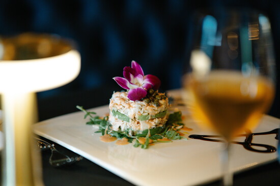 The bar and lounge carry a speakeasy charm, offering guests a full bar with signature cocktails such as the Andreas Old Fashioned, served in a smoked cloche, and the floral Lavender 75. Alongside, diners can enjoy an impressive, curated wine list and tableside martini cart service—an experience that elevates each evening into something memorable.