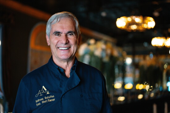 A native of Greece, Andreas—the executive chef and owner of the upscale restaurant that opened in July 2023—traveled extensively throughout Europe, honing his palate before moving to New York. There, he opened his first restaurant, Café Inferno, which showcased Californian-Mediterranean cuisine. Since then, his forty-plus years of culinary experience have taken him across Athens, Barcelona, Rome, Paris, Manhattan, Pennsylvania, Florida, and Dallas, where he served as executive chef at the renowned The Palm before it closed.