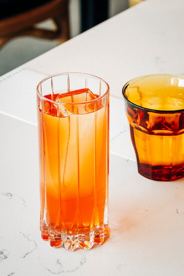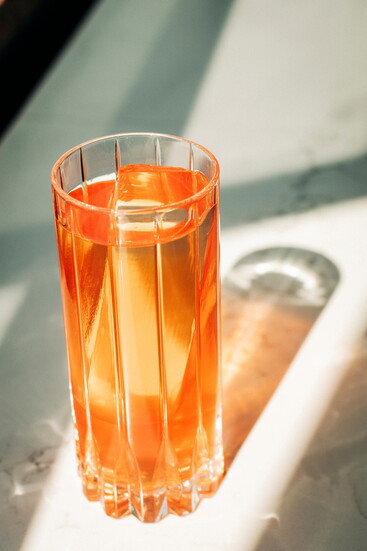 Combine the cocktail ingredients, including cool Afghan Tea Syrup. In a separate