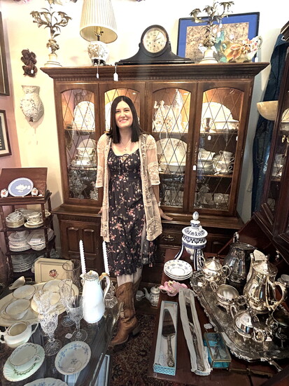 The shop is open every week, Wednesday through Saturday, with hours posted on the website. Cythnia welcomes seasoned collectors or people just beginning to explore vintage style. Everyone is invited to join the treasure hunt.