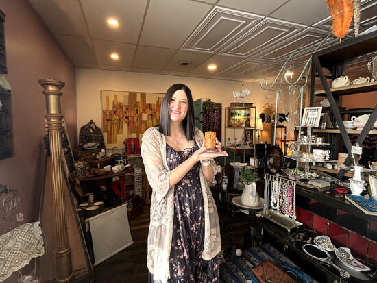 “I wanted it to feel magical inside,” she says. Cynthia named the camper Schmetterling, which is German for butterfly. She partnered with The Cheese Haus in downtown Papillion and had a great time selling from her camper in their parking lot. Much of her stock was breakable, though, so she started looking for a permanent location. In September 2025, she moved into her shop.
