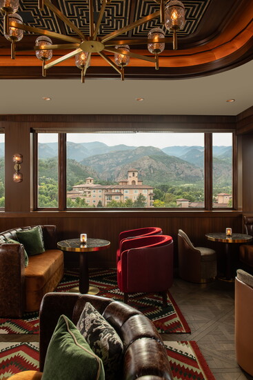 The Copper Room architecture nods to the Penroses’ pioneering migration to Colorado Springs and Spencer’s mining endeavors that ultimately funded his fortune. The room represents the refined masculinity of Spencer Penrose, combining elements of a vintage train car and a western salon. Surrounded with copper tones, tooled-leather and enveloped in warm wood and ornate ceiling tiles symbolizing the warmth and sophistication that Julie brought to his life, this room is set up for conversation.