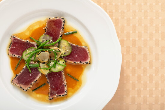 Rather than building the concept around a single cuisine, the team took an atypical approach: designing the restaurant from the guest experience outward. The result is an eclectic menu rooted in nostalgia and worldliness, much like the Penrose’s themselves. Tableside theatrics include carved Beef Wellington, flamed Baked Alaska, and rolling cocktail carts–a nod to old-world glamour, while sushi, sashimi, Pacific Rim flavors, and globally inspired dishes reflect the couple’s extensive travels.