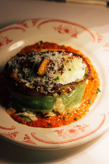 This time of year, the kitchen leans into flavors that warm from the inside out. “We’ve transitioned to a little bit heavier food that sticks to the bones a little bit more,” he explains. Squash is roasted directly on the coals. Swordfish is wrapped with sage and prosciutto. And Amatriciana — “like getting a warm hug from your grandma, or sitting by the campfire” — returns to the lineup by demand.