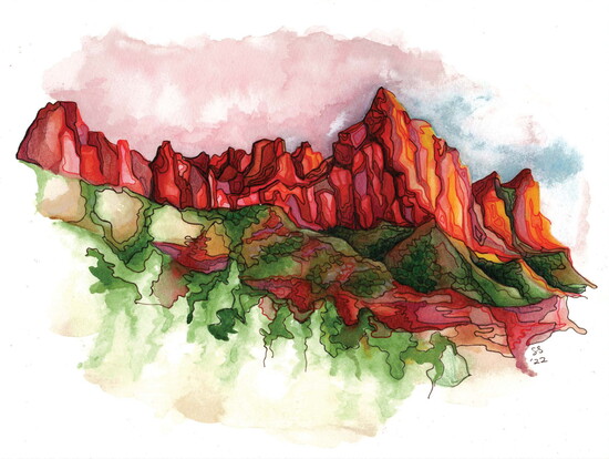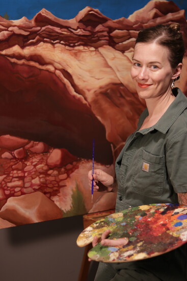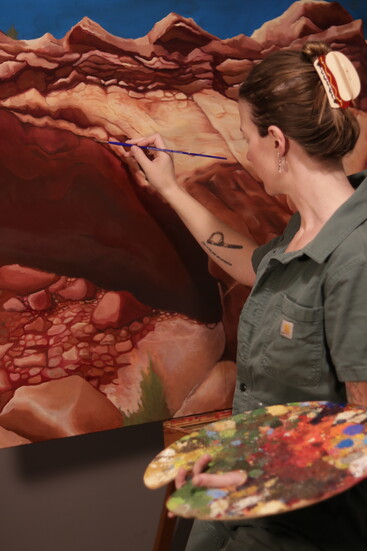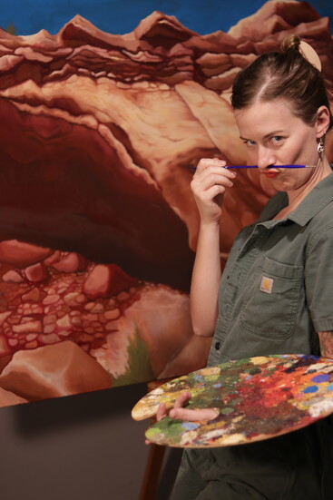 Shelby’s work draws heavily from the natural world, particularly the striking desert landscapes of the West. “Nothing I create in my own mind can ever compare to the beauty I find in nature,” she says. Her pieces often feature vibrant, oversaturated hues and realistic details that capture the quiet magic of her surroundings.