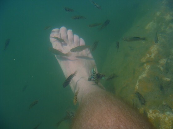 Water temperatures in the 80’s, the 3rd spring is outfitted with a diving platform and shallow wading area. It also serves as a nursery area for a large population of African cichlids. These tropical and colorful fish thrive in warm water. Dangle your feet in the water and baby cichlids will provide you with a spa like pedicure!