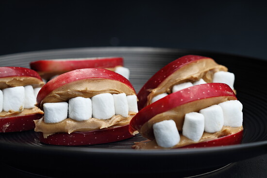 Creepy, cool, and surprisingly healthy! Place a blueberry inside the hollow of a lychee fruit (canned works fine). Drop the “eyeball” into an ice cube tray, fill with water or juice, and freeze. Pop them into any drink for instant Halloween chills.