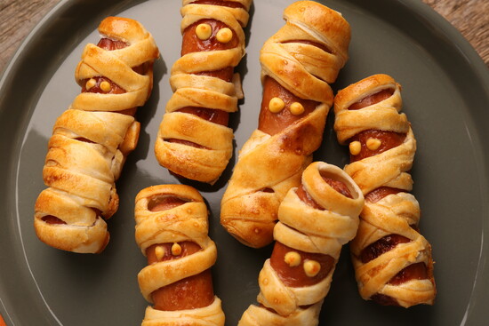Flaky dough, melty cheese, and classic hot dogs get wrapped into bandaged little “mummies.”