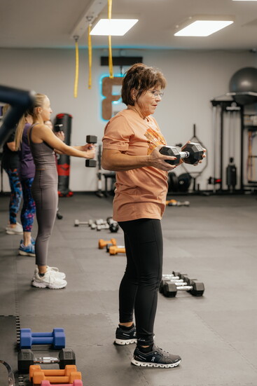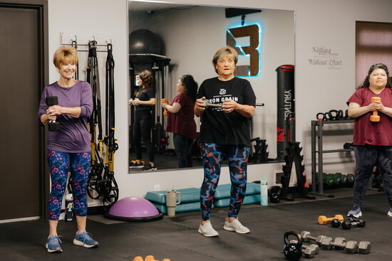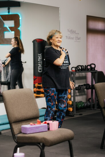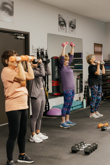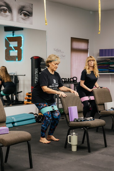 Magers joined the Gentle Stretch class at F8 two years ago and quickly saw improvements in her movement and balance. She added the Barre class, with Estes advising her on modifications to protect her knee, and Women & Weights for strength training. “I faithfully do two classes of each a week,” she says, adding that every morning and throughout the day she does the stretches and exercises she learned.