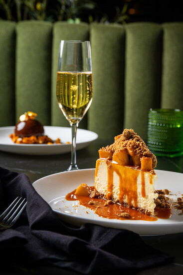 For dessert, indulgence is intentional. The Bourbon Vanilla Cheesecake, topped with caramelized apples and brown butter crumble, captures the cozy sweetness of winter evenings.