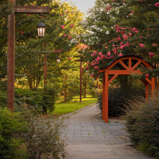 Leaving the city's noise behind, you step onto a cobblestone path shaded by the graceful branches of crepe myrtle trees. In autumn, their delicate blossoms have faded, giving way to a new kind of magic. The leaves, once a vibrant green, begin their colorful transformation, painting the canopy in shades of yellow, orange, and red. A carpet of fallen leaves crunches softly beneath your feet. Lined with street lamps, the path is bathed in a soft, golden glow that turns an ordinary stroll into a magical journey.