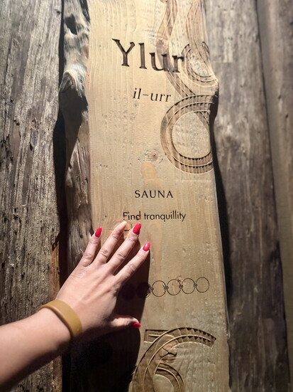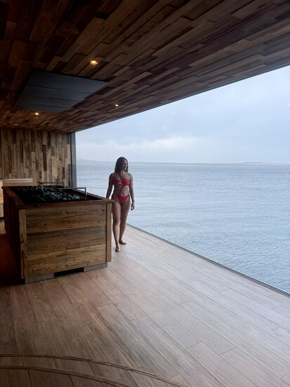Next to the lagoon looks like a hot tub, but it’s a cold plunge pool that’s about 41°F. This experience is known to have health benefits like reducing inflammation, minimizing muscle soreness, and boosting your immune system. Let’s just say I didn’t last 30 seconds, but I did it!