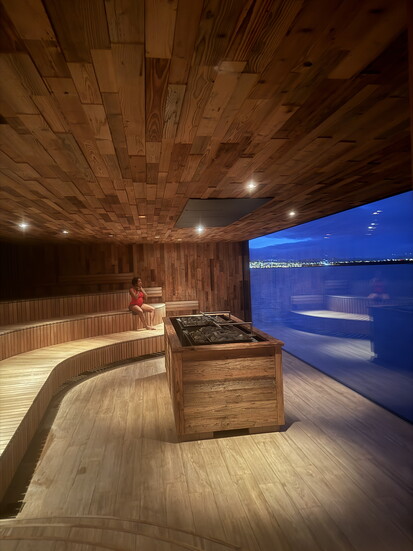 Choose from not one, but two huge, beautifully designed sauna rooms to sit in stillness and sweat out toxins. The highlight is the breathtaking day and nighttime ocean views from any space in each room.