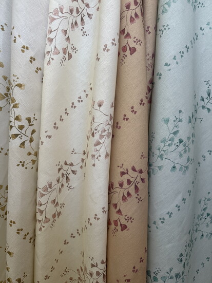 ‘Margaux’ is a large-scale vine that takes her reference from the old walled gardens and courtyards here in Charleston. Her colours are more muted, with soft sage greens and a bruised fig vine, creams and a hint of butterscotch scrambling the walls.