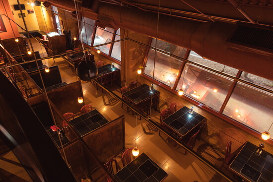 Fondue appetizers and desserts along with hot rock cooking can be enjoyed in a glowing setting. Further, guests are surrounded by photographic art by William Carr, unique metal designs by Darrick Phallong of Elevado Metalworks and cut metal by Reflections in Metal.