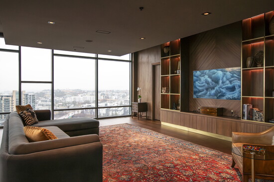 When asked what details stand out most, it’s the cohesion. The way every element works together to create a singular experience. And nowhere is that more evident than when entertaining. With downtown Nashville as its backdrop, the kitchen becomes a stage. The warm tones of walnut and marble complement the city skyline, while the lighting strikes a perfect balance between interior ambiance and exterior view.