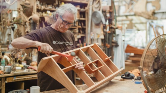 Holualoa artists Tai Lake — an internationally acclaimed woodworking designer and fine furniture maker — and Cliff Johns, an award-winning woodturner, organized the first Hawaii Artists Collaboration in 2011. From the start, Tai has hosted the artists, inviting them to live, eat, work and play at his two-acre property with open-air workshops just north of central Hōlualoa Town.