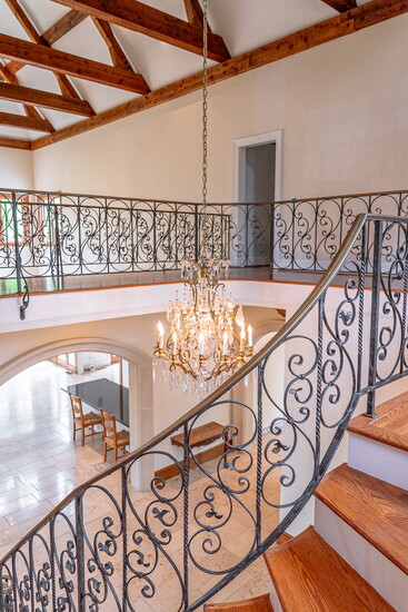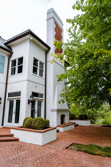 Designed by Emily, the home features personal touches that bring old-world charm: a real slate roof, a striking three-story foyer with 36-foot, beamed ceilings, enchanting built-ins, floors of French limestone and oak parquet, wrought iron details and seven fireplaces. The open floor plan integrates its living spaces and natural surroundings with porches, patios, balconies and brick terraces.